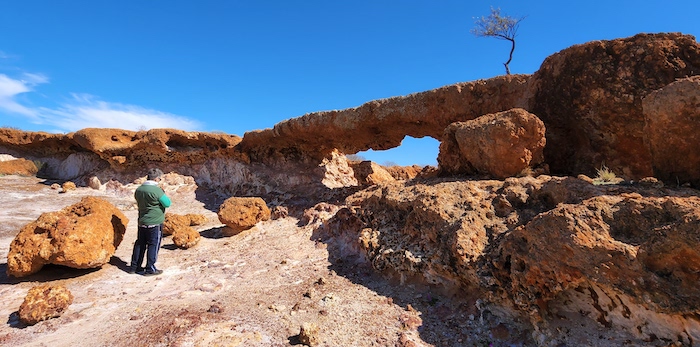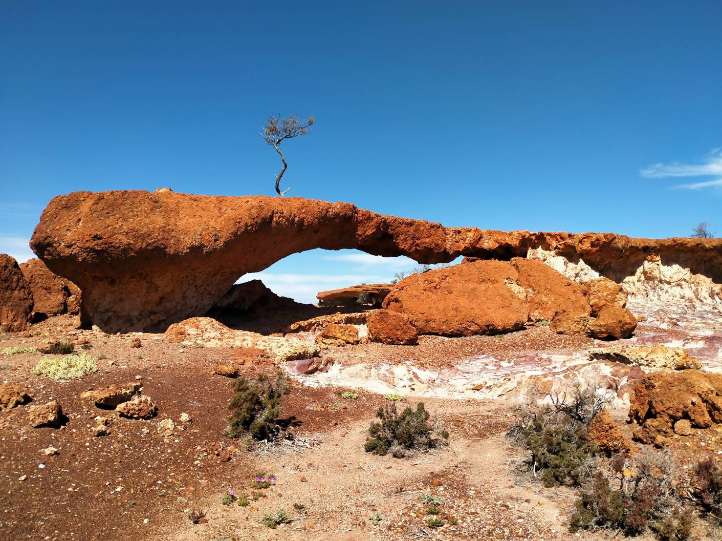The spectacularly eroded geological feature at Bindah Breakaways is facetiously called Linden Bridge.