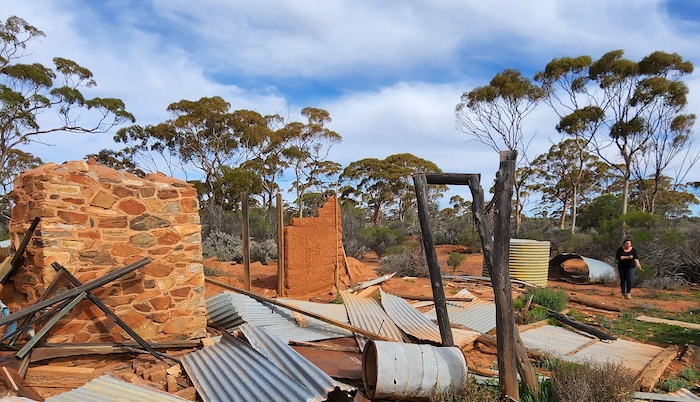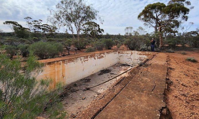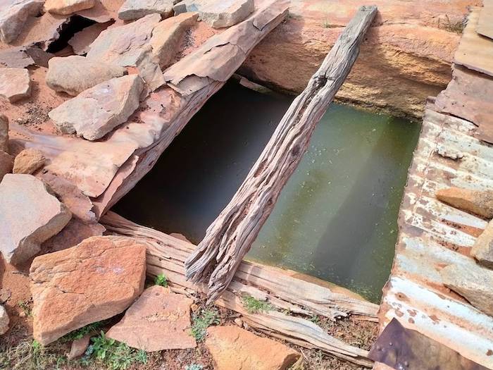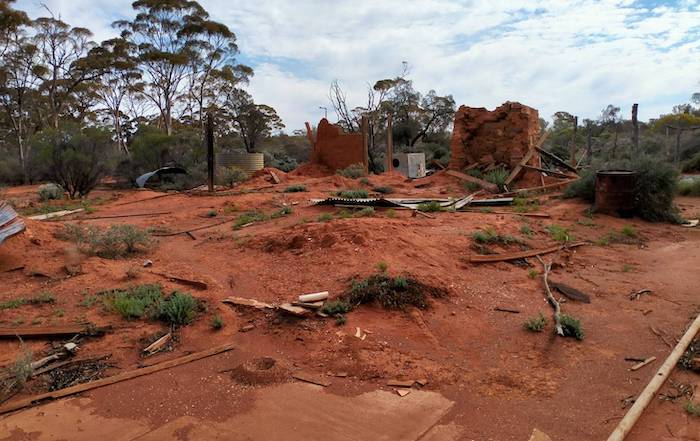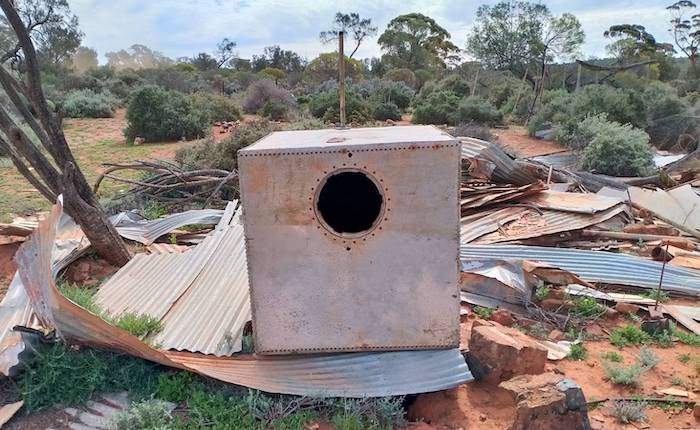 The water tank among the ruins is actually a repurposed ship’s container. These are seen throughout the bush, generally being used as a water tank.