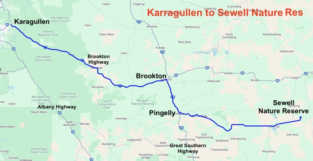 The route to our first overnight camp, Sewell Nature Reserve, took us through Brookton, Pingelly and Yealering.