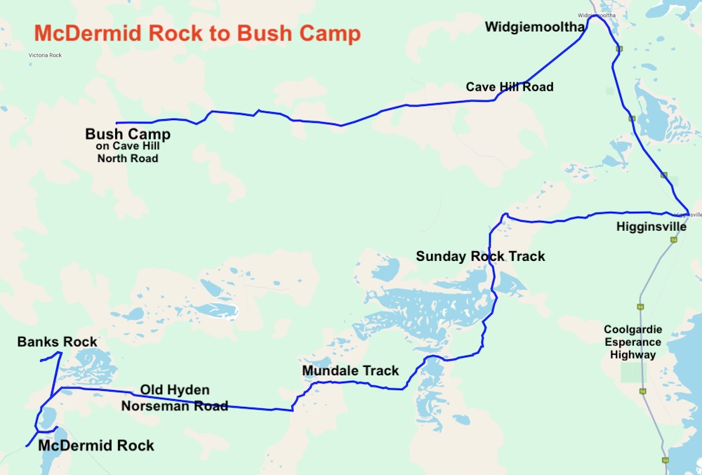 Our overnight camp was only a few clicks short of Victoria Rock Road.