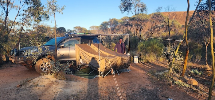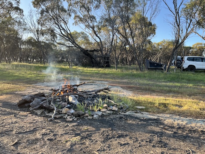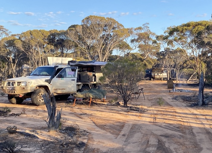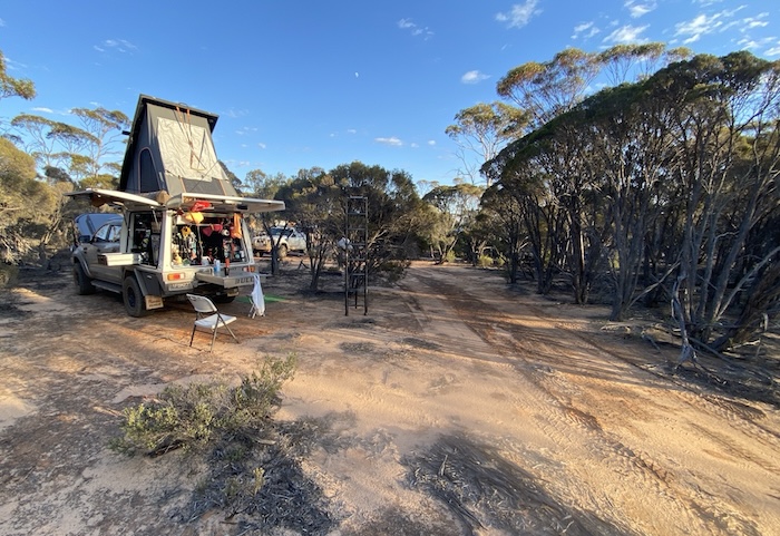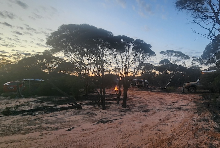 One of the delights of the Great Western Woodlands is that it abounds in great campsites. Open, level areas with plenty of firewood just seem to pop up right as you need them. And so it was this evening.