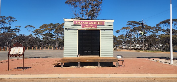 - Originally contructed as the despatch and receival point for Lake King and surrounds. The store opposite had a ‘gallon licence’ and was a popular social gathering point known as the ‘Hole in the Wall’ until the tavern opened in 1987..
