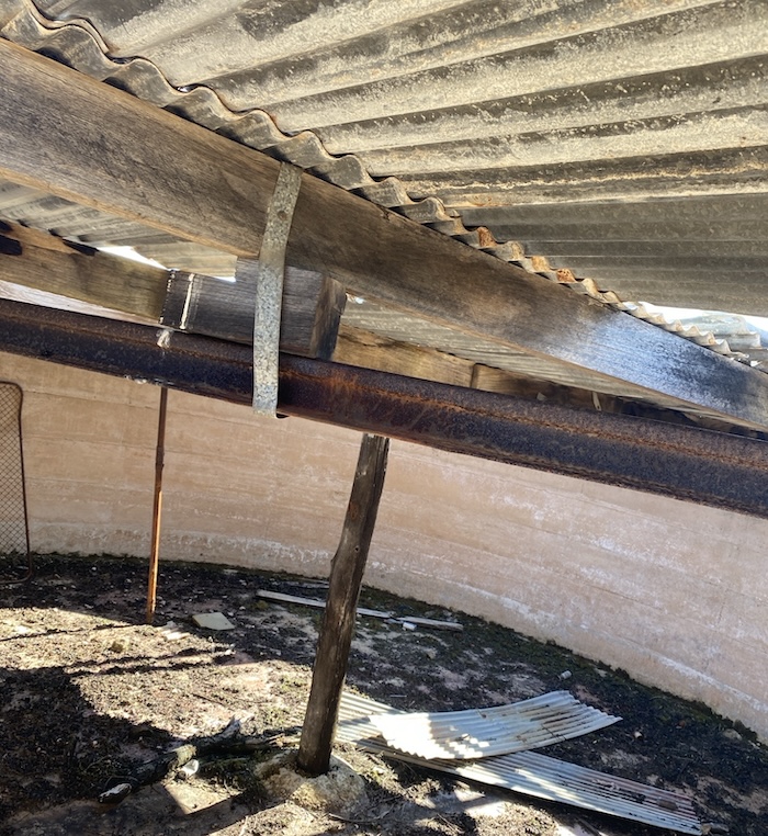 The roof diverted rainfall water into the tank.