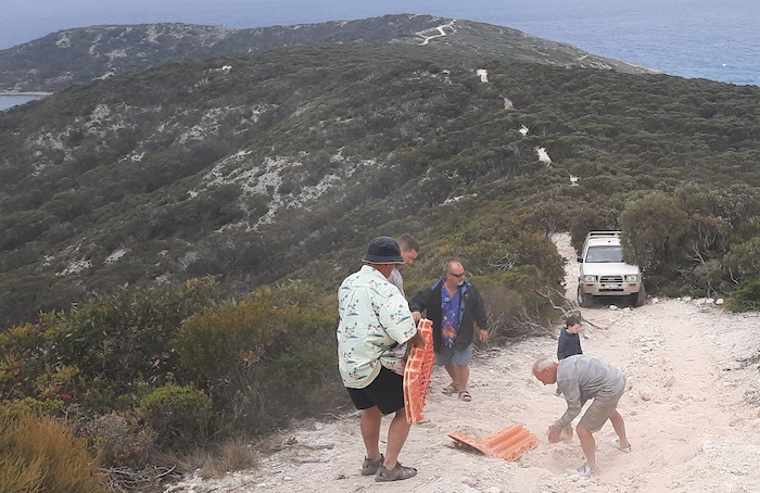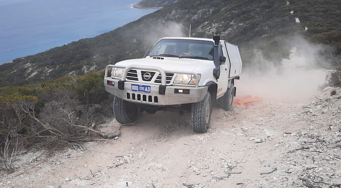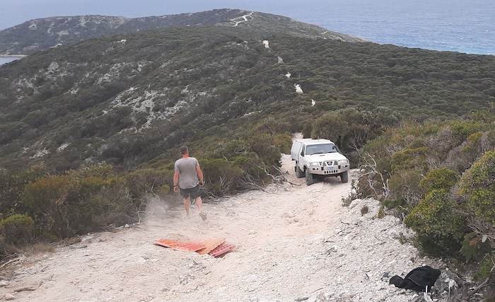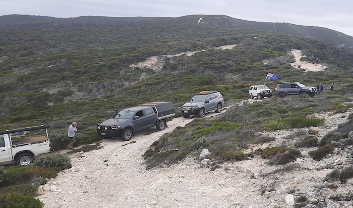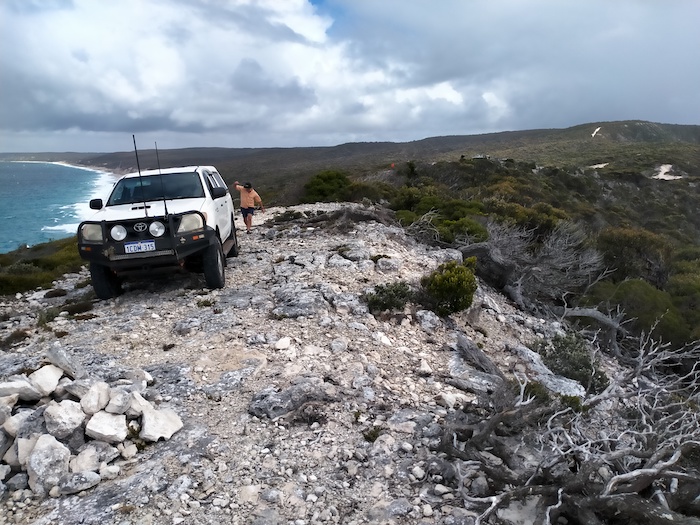 - Rod’s Hilux on the narrow spine of Groper Bluff.
