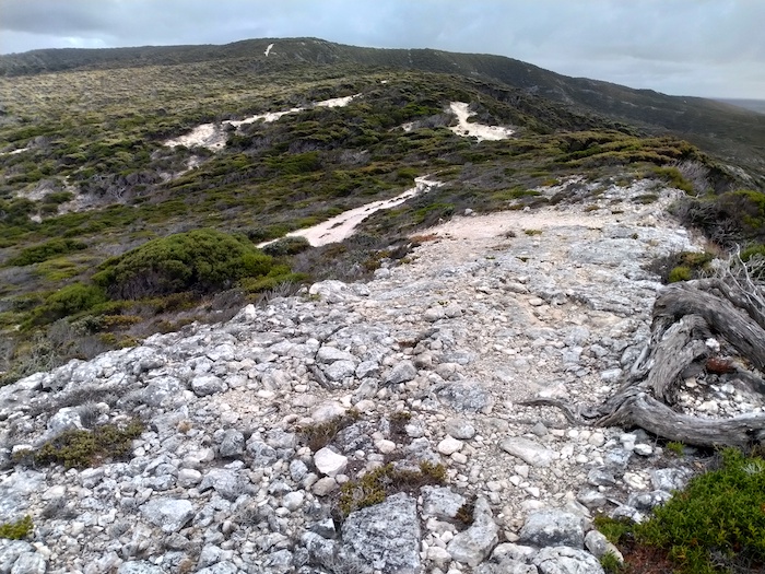- The track narrows on the spine of Groper Bluff.