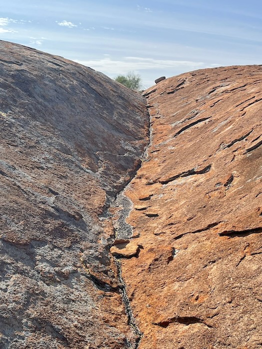 The turnoff to 71 Mile Rock and Well is unmarked. The track into the rock is tight and overgrown.