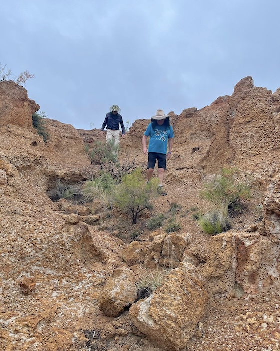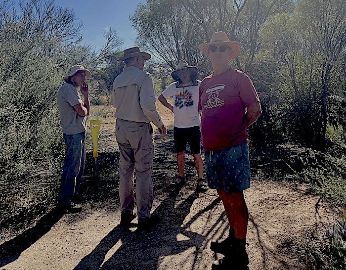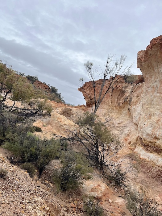 From Coonmine Waterhole it is currently not possible to follow the historical GLT to Wangine. We took ‘liaison’ routes and arrived at Wangine Lookout on Davyhurst Road at the top of the Breakaway.