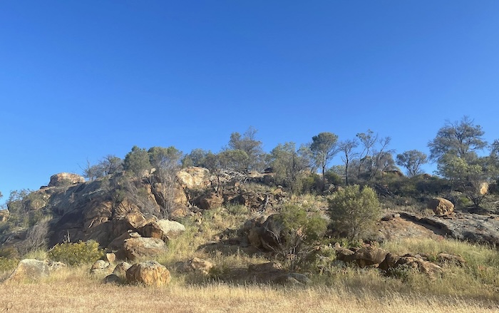 Ullamby is the next waterhole after the Kurrajong tree, followed by number of points of interest at Ives Rock, Wallangie.