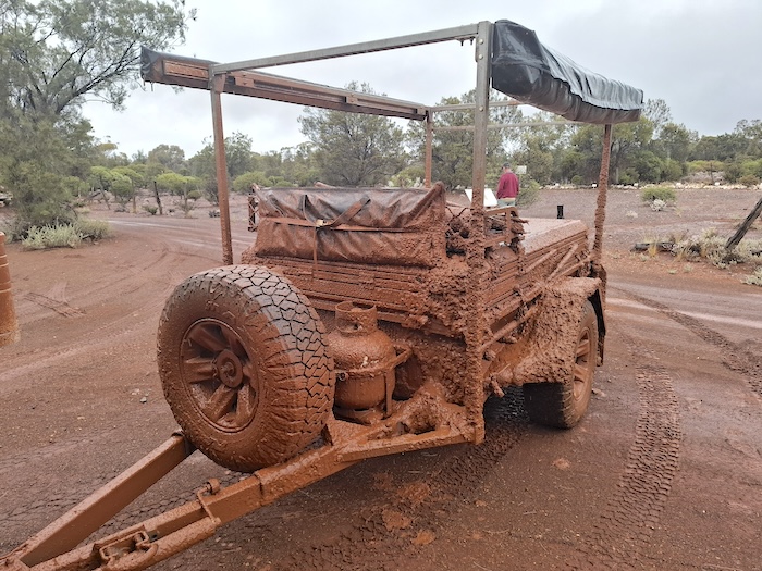 With the drenching rain extending well more than 24 hours the Road Trip essentially finished at Coolgardie. Plans to travel a section of Hunt Track between Gnarlbine and Yerdanie were abandoned. Travel anywhere off a sealed road would be foolhardy. Similarly, the idea to travel the Karalee to Yellowdine track was a no go.