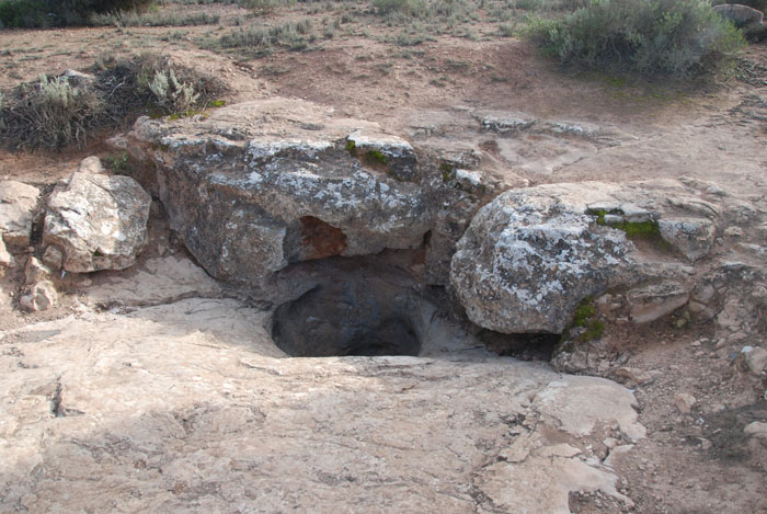 This interesting ‘grave’ is just behind the Quarantine Station at Border Village on the Eyre Highway. There is a ledge about 700 mm below the opening of this hole in the limestone karst. An animal has fallen into the hole, landed on the ledge and, trapped, starved to death.