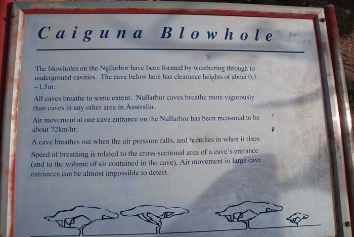 A kilometre west of the roadhouse is the Caiguna Blowhole, the second of the area’s major tourist attractions.