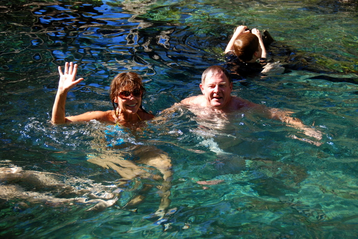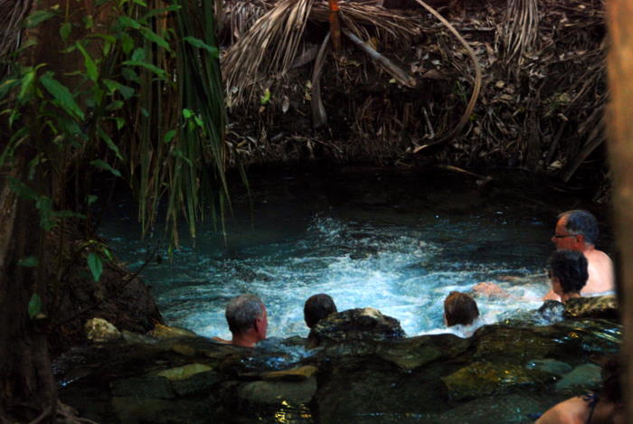 Bitter Springs is more ‘natural’ than the pool at the caravan park. Jump in, float down (about 150 metres), climb out, and do it again. Flotation noodles are good but many people just used thongs on their hands as paddles.
