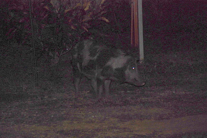 We booked into the local caravan park and during the evening encountered a feral pig that found the leavings of park residents easier pickings than bush food. It was totally unconcerned by humans.