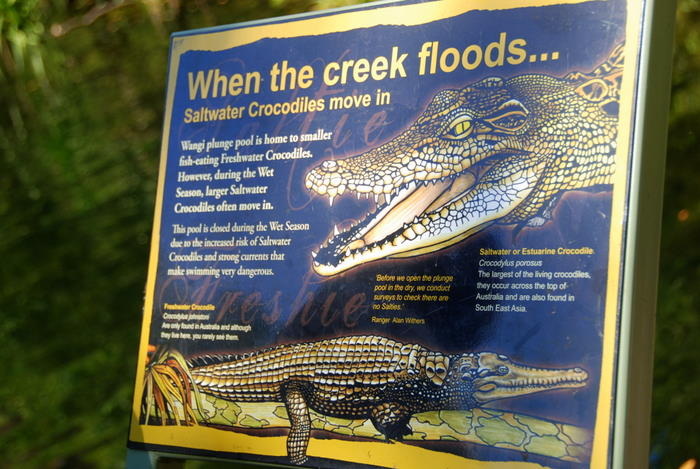 Wangi Falls is the most popular and most famous of the attractions but it was closed because a ‘saltie’ had taken up residence during ‘The Wet’ and Rangers had been unable to relocate it.