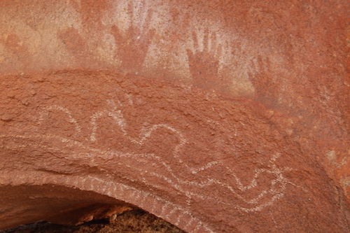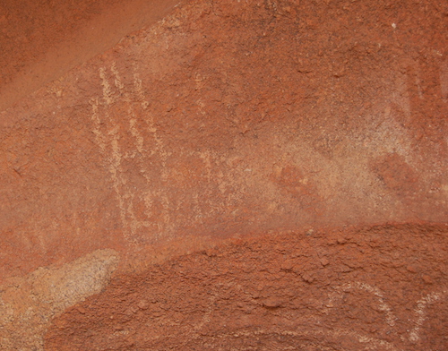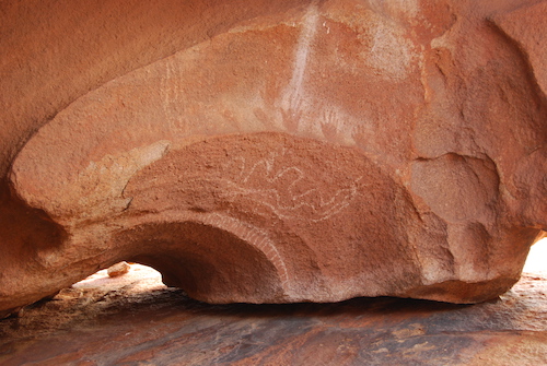 The northern outcrop has fine examples of simple aboriginal artwork.