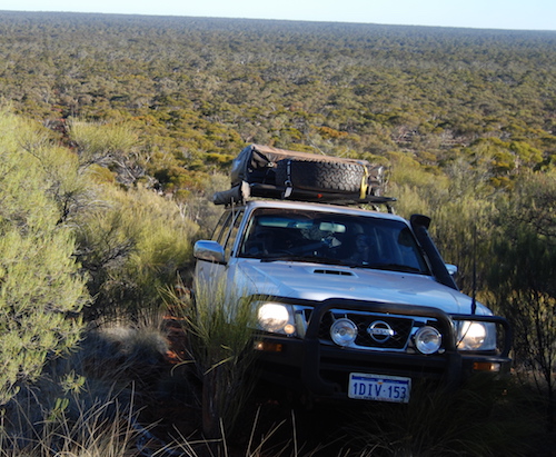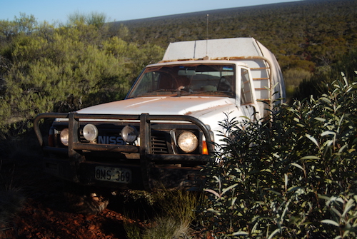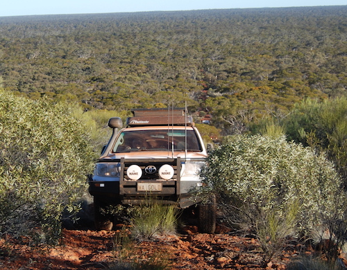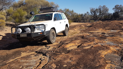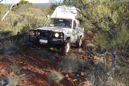 - Phil’s Toyota on a rocky outcrop where the Mt Jackson track disappeared.