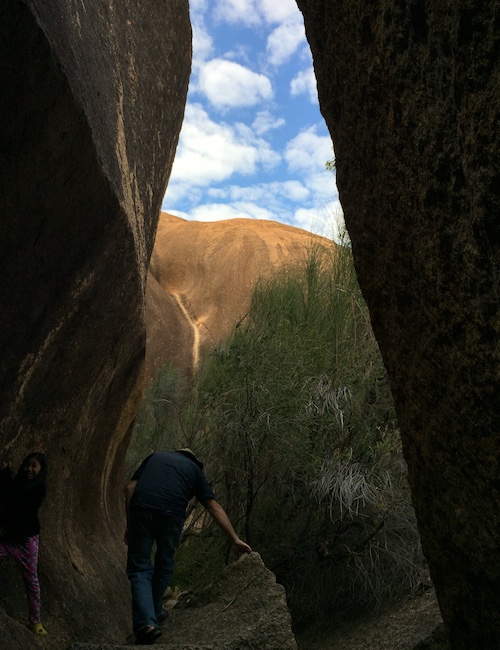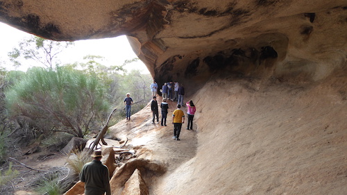 We stopped at Eagle Rock (local name, not official), climbed to the top, found aboriginal paintings, took photos, descended the rock, and then had lunch.