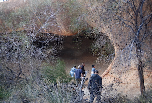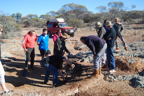 I parked and called everyone forward. We were within the vicinity of the rockhole and it was just a matter of navigating on foot to the position given by Lesley and Michael Brooker.