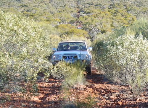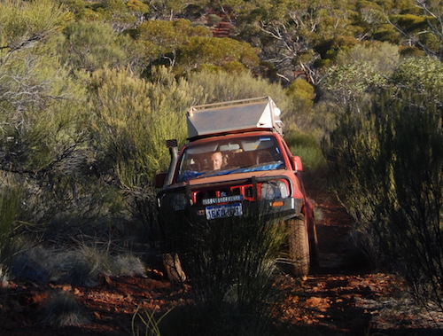 The southern end of the Mount Jackson track is difficult to spot. Once located, it was almost immediately clear that it had been little used. It is very overgrown and, in some places, indistinct. Travel on the track was slow, challenging, and damaging to vehicles. Serious ‘bush pinstriping’ – more accurately – scratching!!