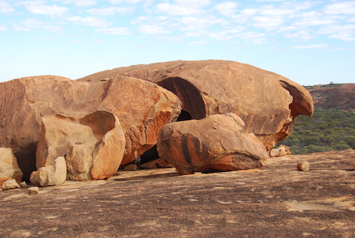 - Aboriginal artwork on a striking example of a haloclasty-affected rock at Eagle Rock.