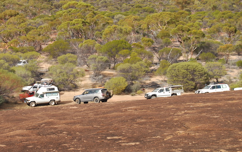 And so it was with the Helena and Aurora Ranges Tour. The plan was to stay at Mukinbudin on the Friday night, visit the Helena and Aurora Range on the Saturday and continue on to Ularring Rock for the night. From there we would drive to Coolgardie via Daveyhurst and Rowles Lagoon to Baladgie Rock. The next day we would return to Perth. The reality was somewhat different.