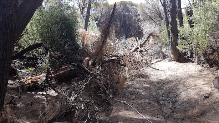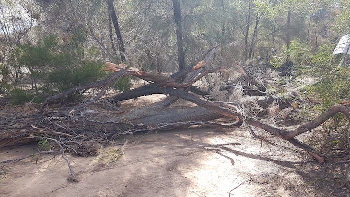 A fallen tree had completely blocked the Track. I was insistent that we have a crack at removing it – which was easy for me to say because I wasn’t going to be doing anything physical.