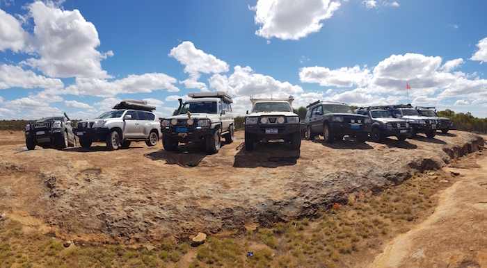- Lineup of vehicles at Krakouer Rocks.