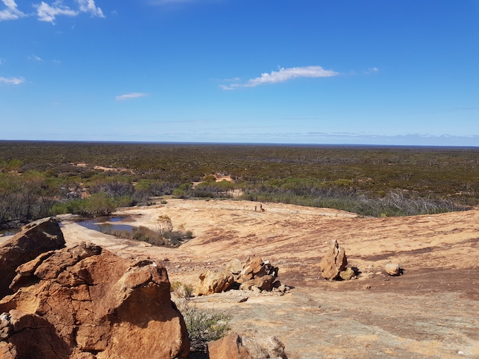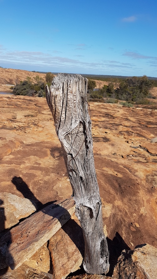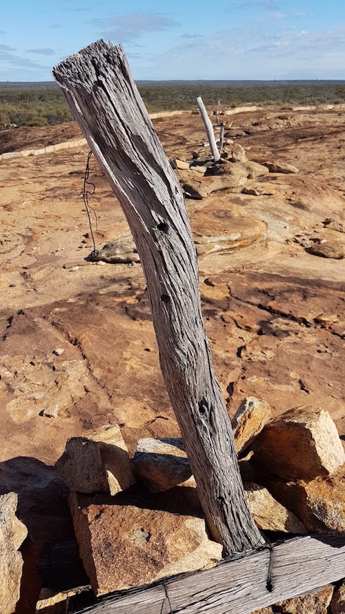 Only a few hundred metres from Emu Rocks is the Vermin Proof Fence. Previously known as the Rabbit Proof Fence, it was part of Western Australia’s desperate attempt to stop rabbits from invading the state. Eventually biological control methods (myxomatosis 1950s, calicivirus 1980s) were used to control rabbit populations. For much of its southern length, the No 1 Fence delineates the sharp boundary between the Great Western Woodlands and the Wheatbelt.