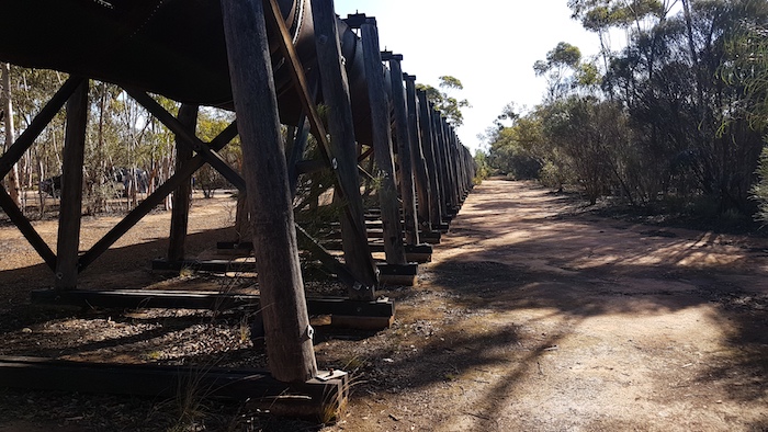 - Massive jarrah supports for the Karalee viaduct.