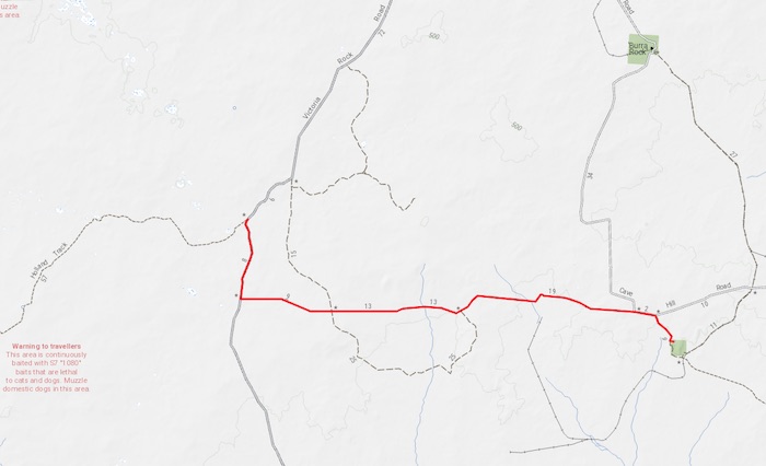 Leaving Cave Hill we took the track north to Burra Rock. This track is a poorly engineered road with at least four bends that ‘tighten’ as one negotiates them (instead of ‘loosening’) and one ‘reverse-camber’ bend. A trap for the unwary. The surface of the road is, however, ok.