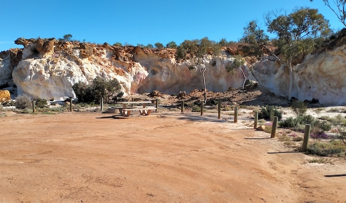 As we approached Gnarlbine Rock West the way was blocked by two fallen trees which in any case was of no import because the Track finished just beyond them. We turned around and drove to Gnarlbine Rock East where we followed the Track west around the base of the rock and found a pleasant campsite.