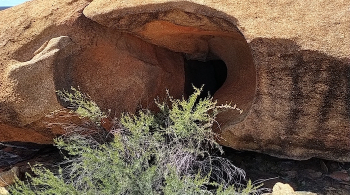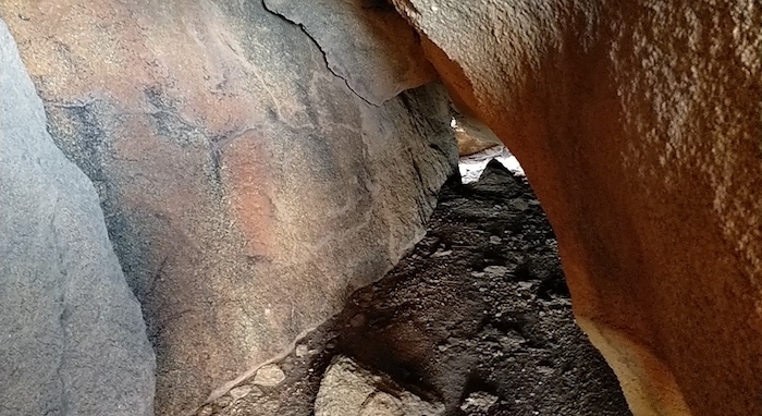- Entrance to ‘cave’ partway up Banks Rock.