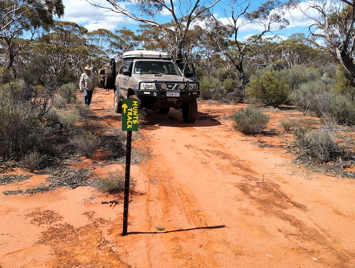 After checking out Hunt’s Well at Yerdanie Rock we continued east along the Hunt Track. A directional sign at the Rock was missing, as were a few others along the way. Not many vehicles have been using the Track between Yerdanie and Gnarlbine.