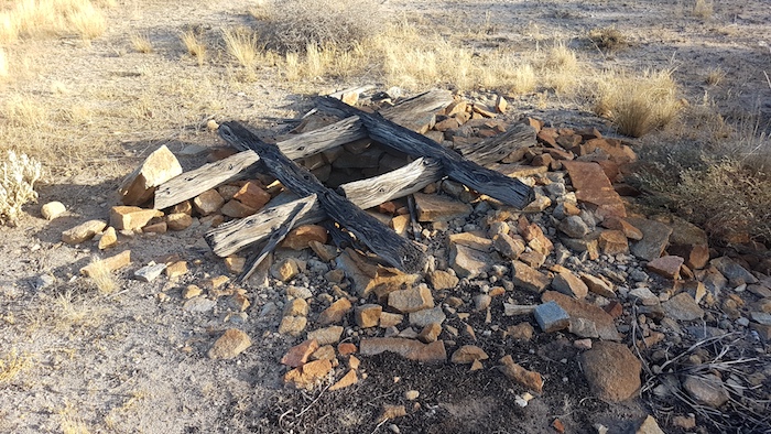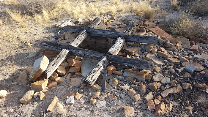 The well at Curara Rockhole is in good condition. The placement of logs to protect and mark the well is distinctive.