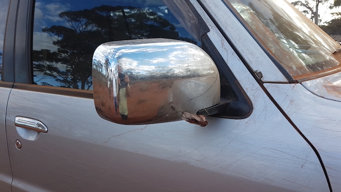 During the afternoon we continued along the barely discernible track past where were intended to camp to determine if the track went to Yinyoungning Rockhole. On return to the campsite we had some unusual vehicle damage.