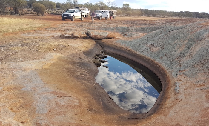 This part of the trip was designed as a ‘recce’ for an upcoming Gold Prospecting Trip. Kim and Greg and Margot ‘rediscovered’ Yinyoungning Rockhole and then joined the other group who had spent the morning with detectors having a good walk around the bush looking for prospective ground.