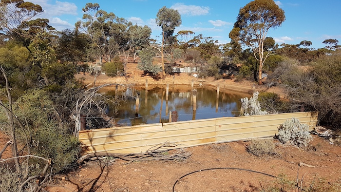 The track turns to the south-west at Marda and leads to a station dam and cattle yards.