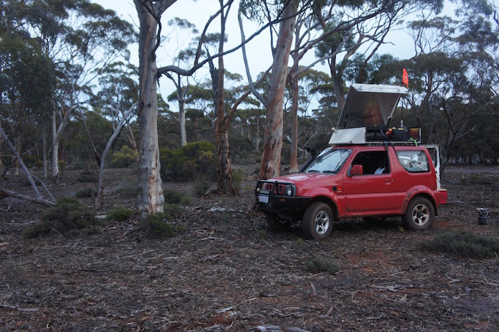 At our latitude, 94 kilometres of eastward travel equates to four minutes of solar time, meaning that at Norseman, 565 kilometres east of Perth (straight line) the sun sets 24 minutes earlier than in Perth. Coupled with our determination to camp in the bush, rather than Norseman Caravan Park, there was an imperative to find a campsite soon – a bush camp where we could light a fire.
