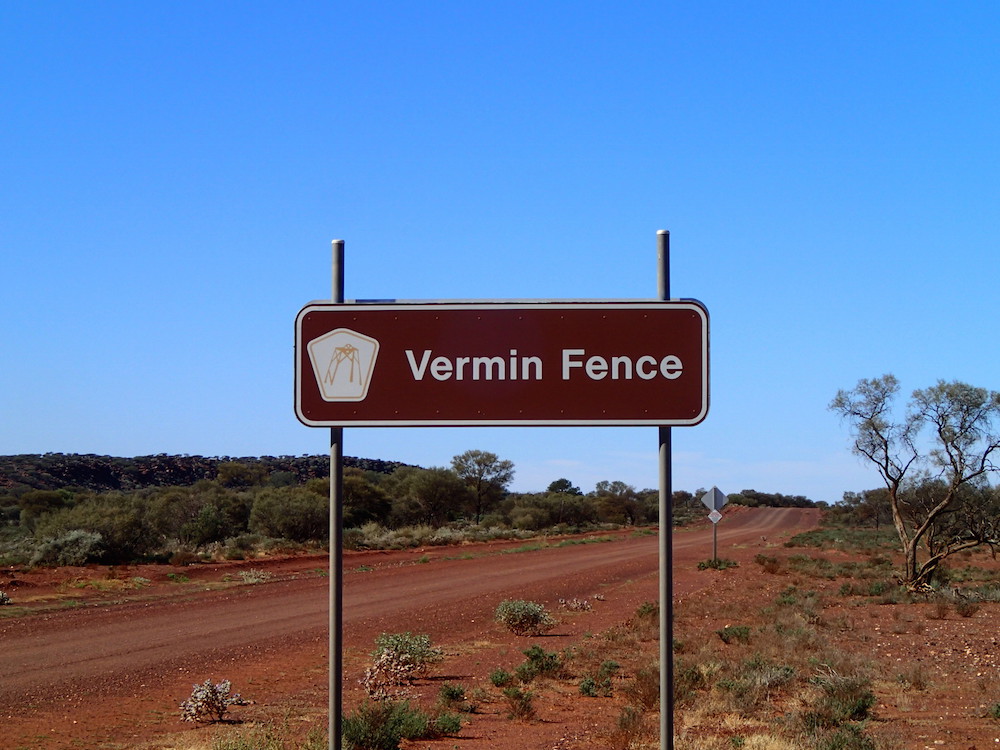 We headed out of Sandstone on the dirt road towards Meekatharra. First stop was at the Vermin Proof Fence.