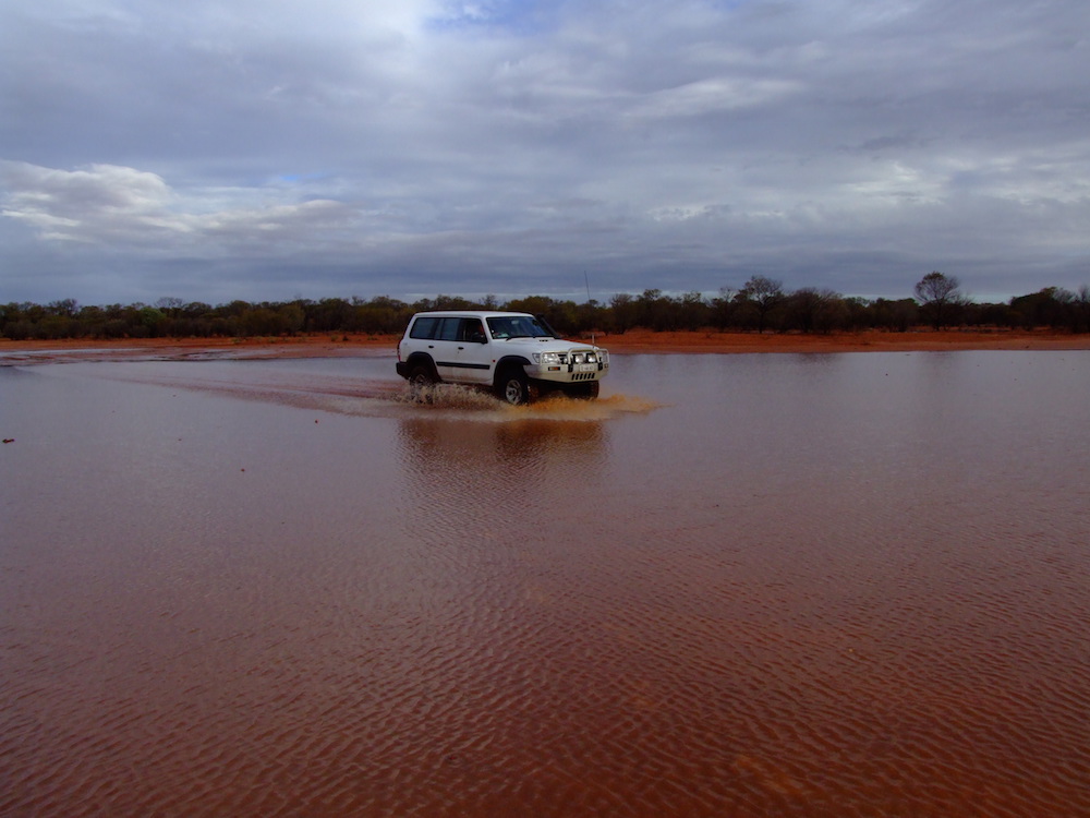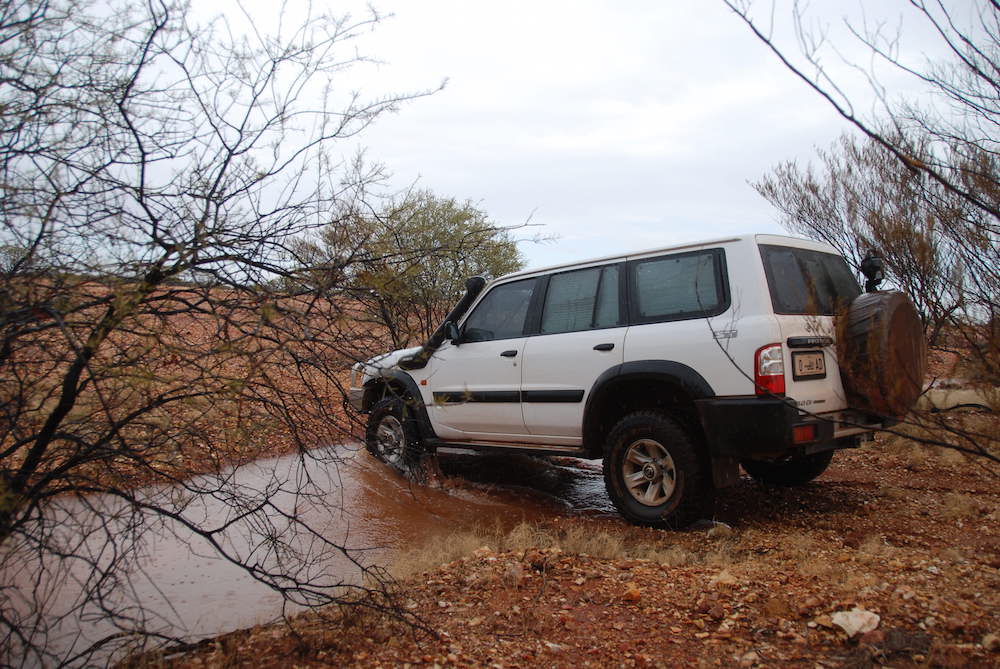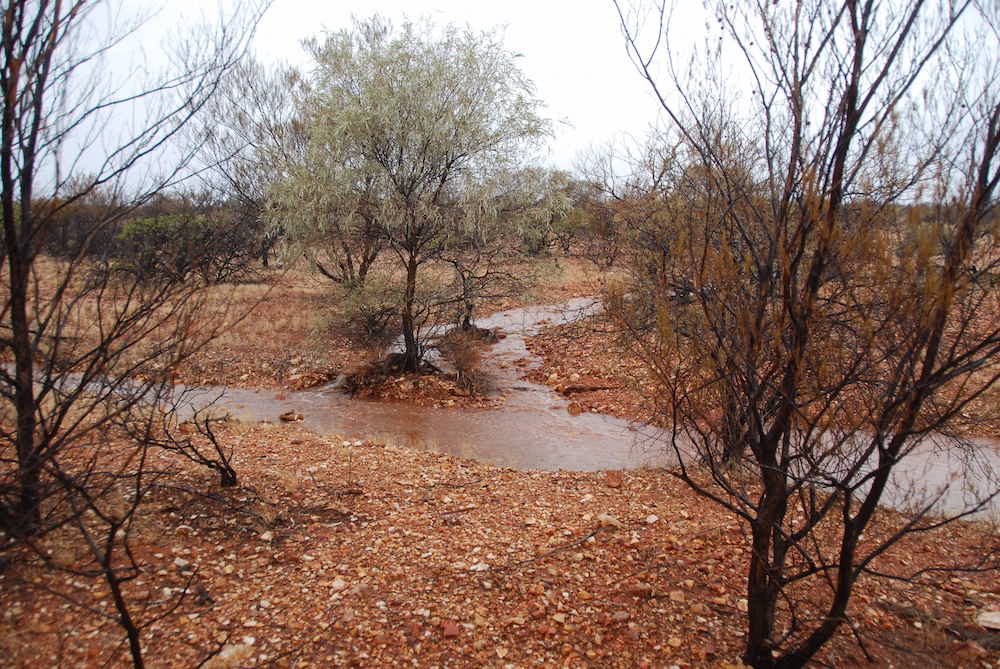 All was going well until the rain arrived. At first it was just annoying but as we descended the plateau and progressed closer to Mooka Station the creeks were rising and the gullies were gushing. Water spread everywhere.
