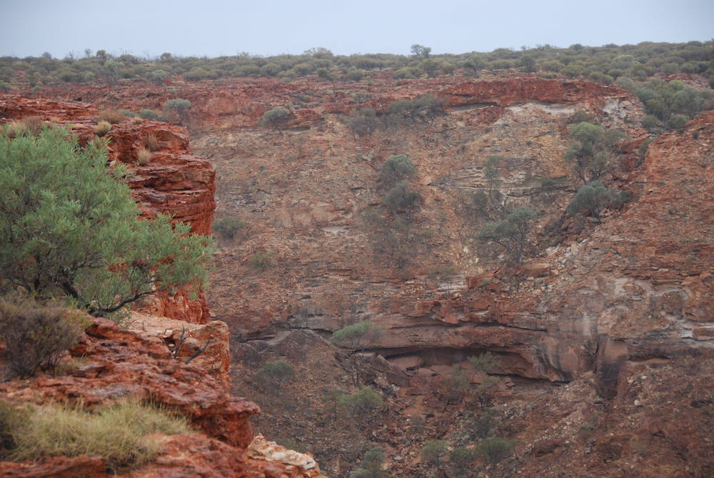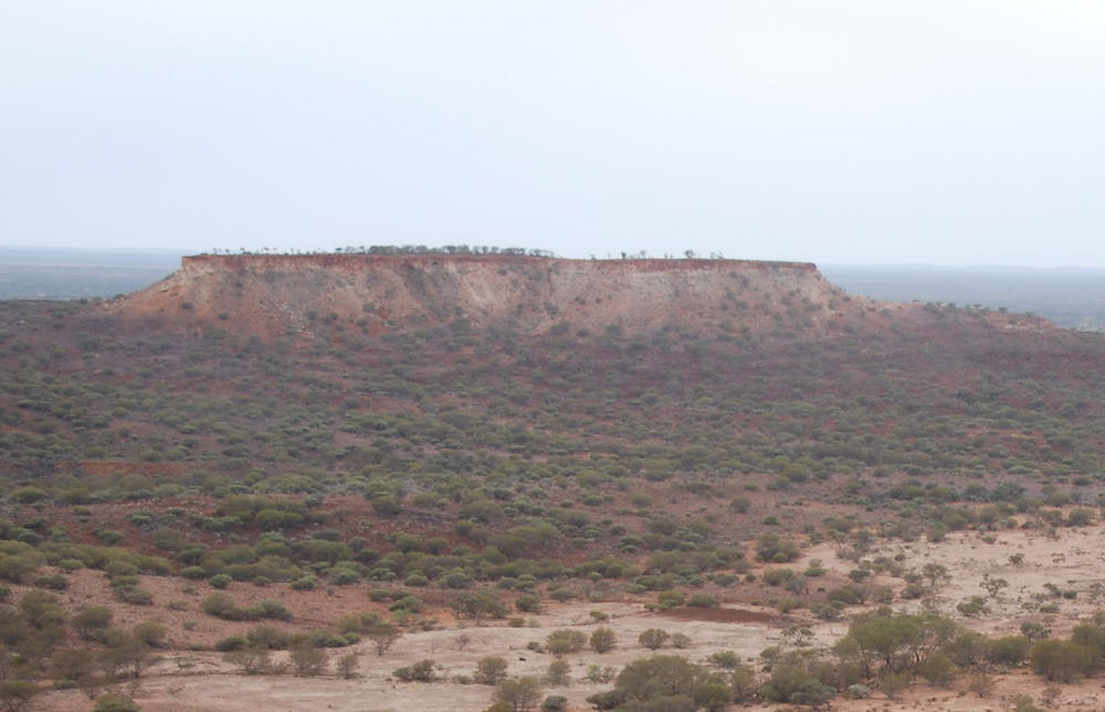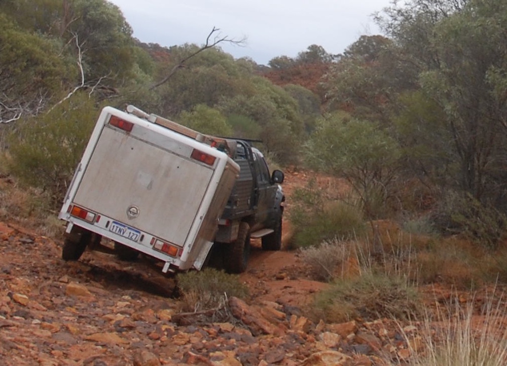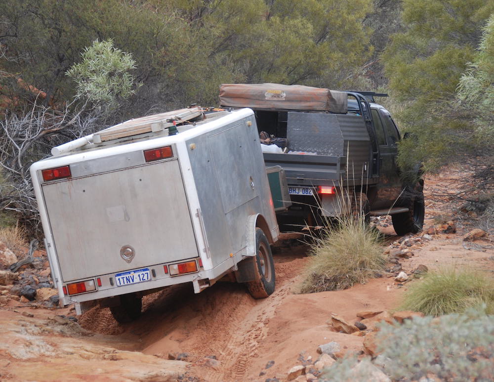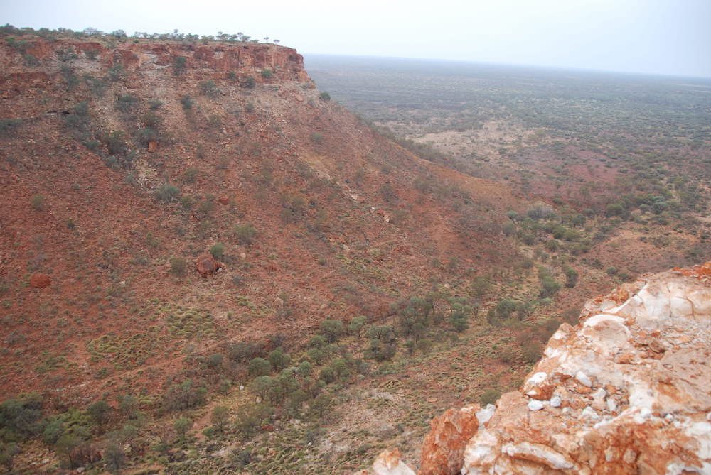 The climb up to the top of the Kennedy Range was no real challenge, even with a trailer. The track is clearly delineated and no test of navigation. The scenery at the edge of the mesa is spectacular.