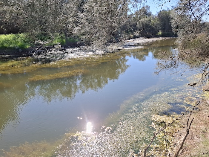 Ellendale Pool is a popular picnic and free camping spot on the Greenough River with toilet facilities, gas barbecues, picnic tables and shade. Too popular for us. As a result of the time spent socialising in Dongara we arrived too late to secure a place to park at Ellendale Pool. But not to worry!