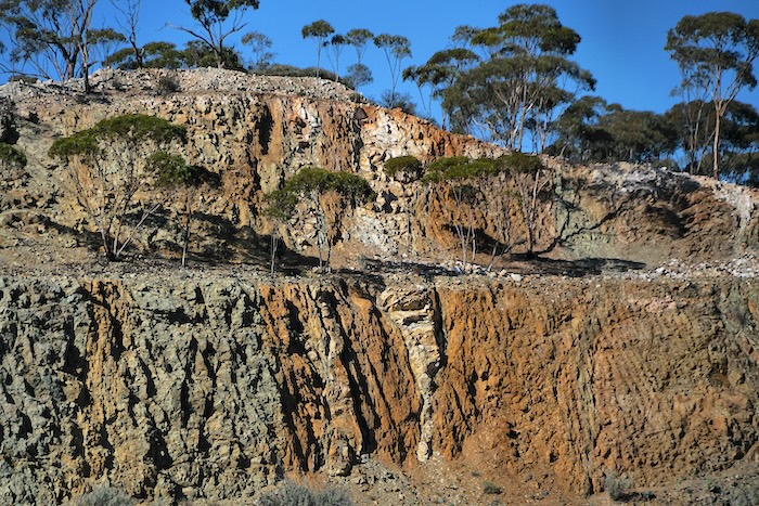 - A quarts vein is visible in the ultramafic in the Widgie 3 pit wall. Photo Richard Carver.