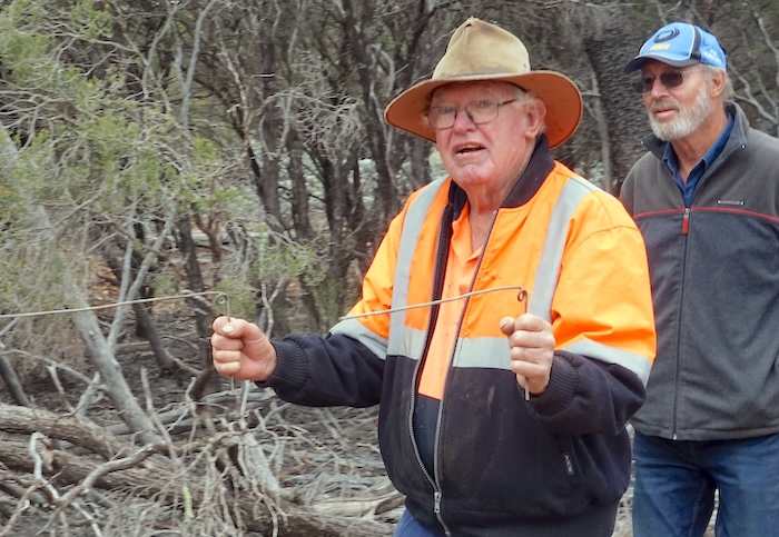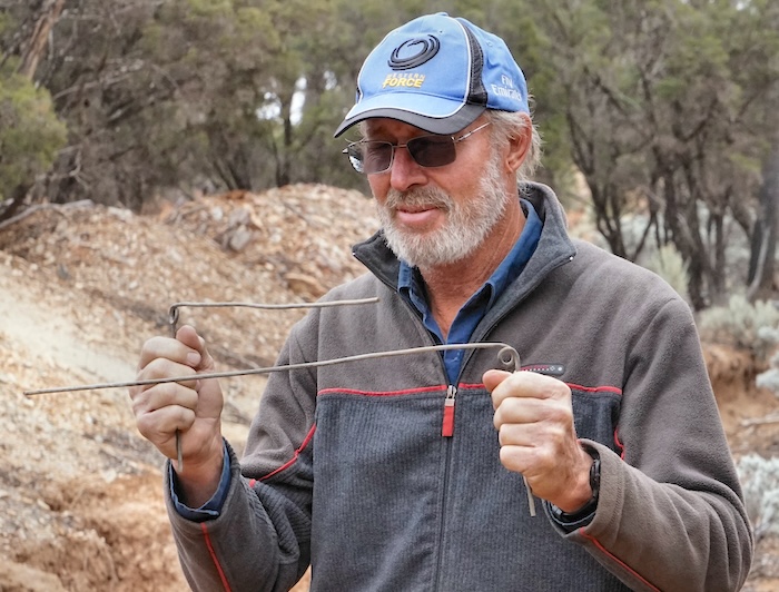 - Ross tries his hand at gold divining. Photo Richard Carver.