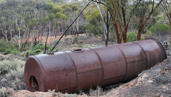 - A large boiler used for condensing water at the Lady Mary workings. Photo Richard Carver.