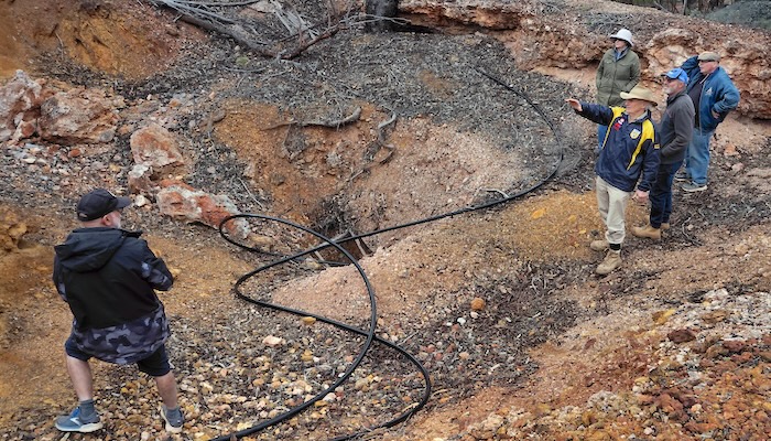- Eric, Esme, Wayne, Esme, Ross and Ivan at the workings. Photo Richard Carver.