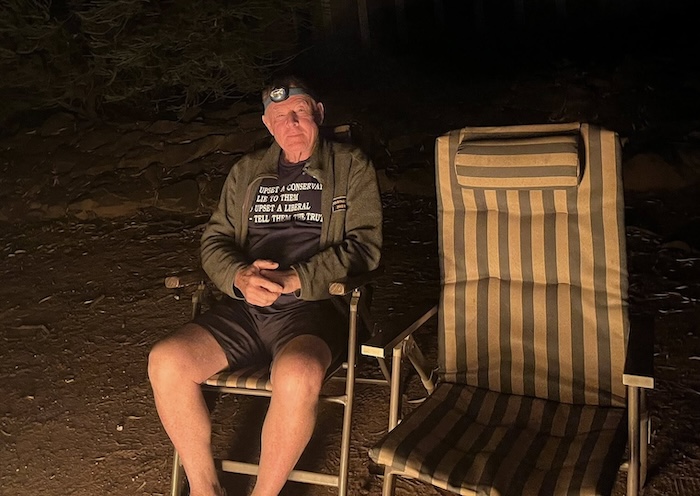 - Kim at campfire, Norseman. Photo Tassy Epton.