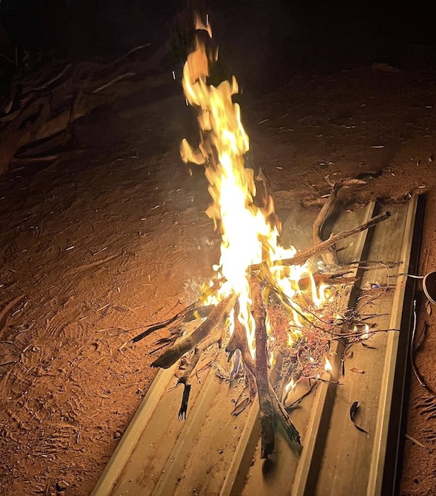 - Campfire on a couple of sheets of iron so no mess was left behind. Photo Tassy Epton.