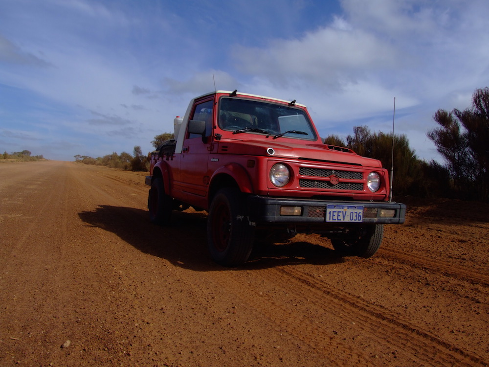 Cliff and Adi in their Suzukis refuelled in Hyden while the others had a look at the two famous rocks. We then headed out along the Hyden East Road, past the State Barrier Fence.