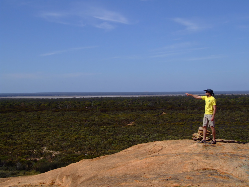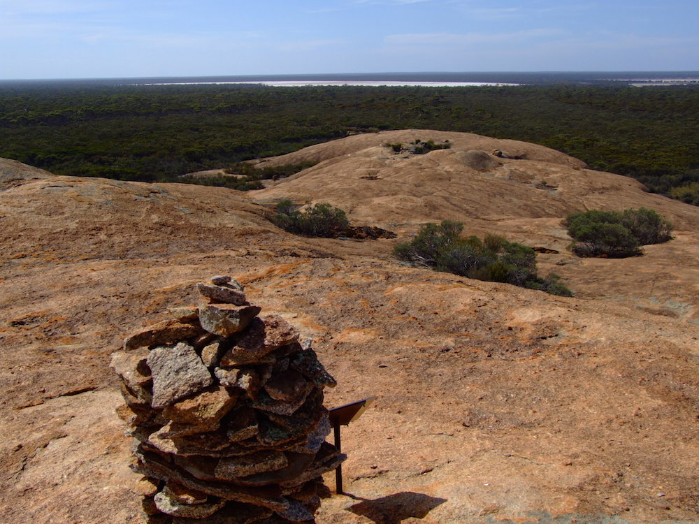 We stopped to climb McDermid Rock, one of the numerous granite rock outcrops (inselberg or monadnock) that act as island sanctuaries for a whole range of wildlife in this remote, low rainfall area. These granite outcrops catch and direct rain water that, in earlier times, was so precious for explorers and prospectors. Additionally, they were a vital navigational beacon through the dense thickets of tamma.